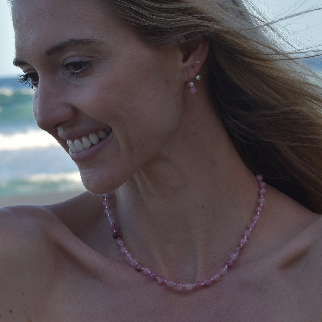 Choose a blue & green agate stone mix or pink & purple agate stone mix, paired with freshwater pearls and your choice of gold or silver earrings.